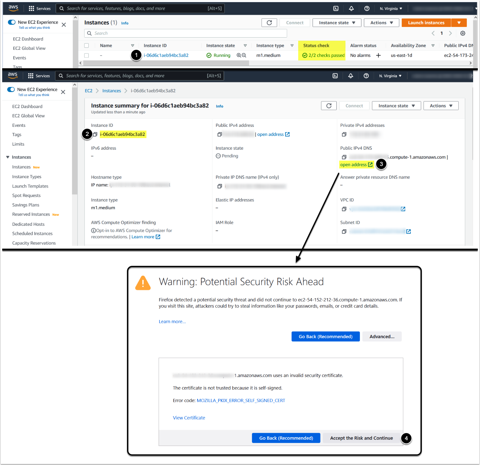 4. Access the New Instance by Public URL from Web Browser and Accept SSL Warning