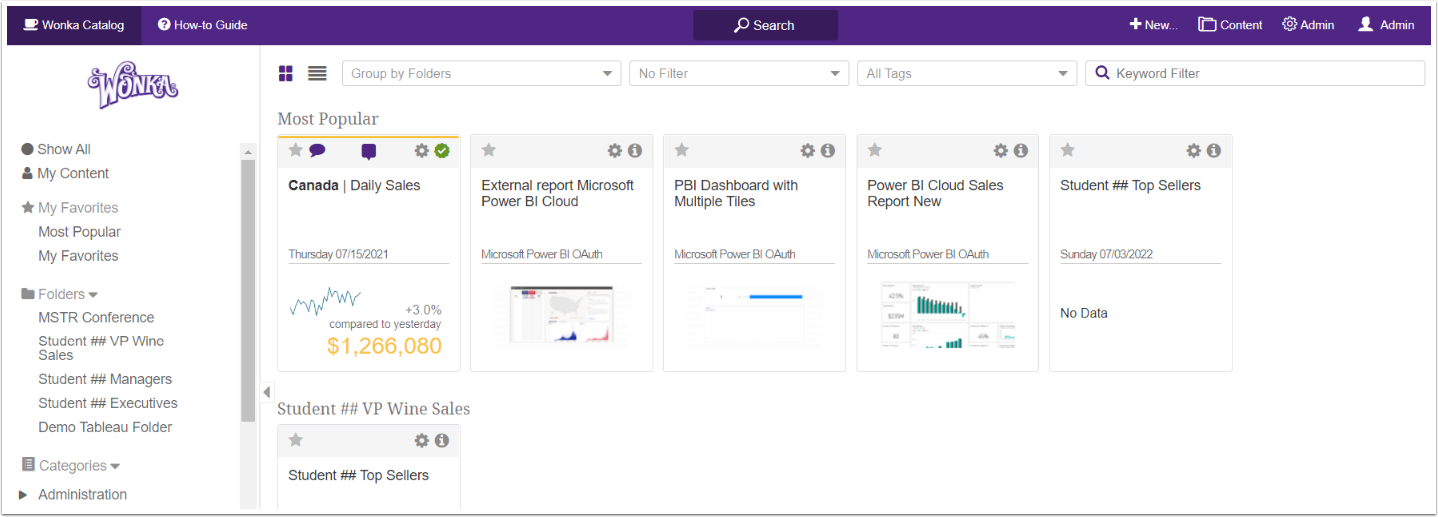 The look can be customized in a wide way via the usage of Portal Pages. In that case, the bar colors will be inherited from the Theme, but all other aspects, including the size of Tiles can be adjusted. For more information, refer to the Overview of Portal Pages article.