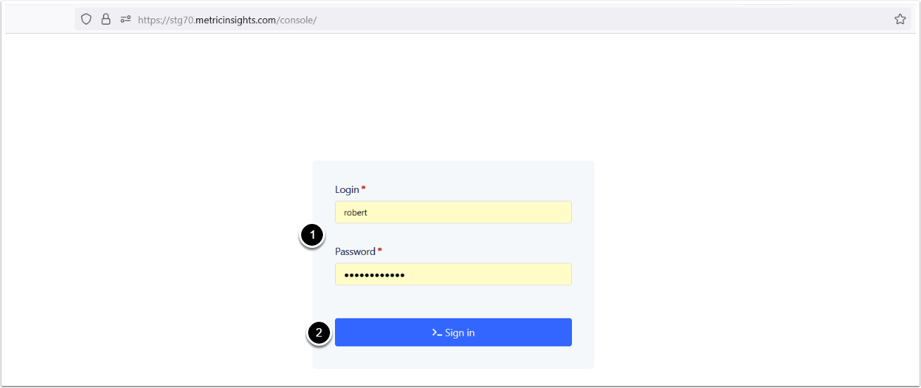- Enter the credentials of the Admin user who has been granted access to the MI Console.