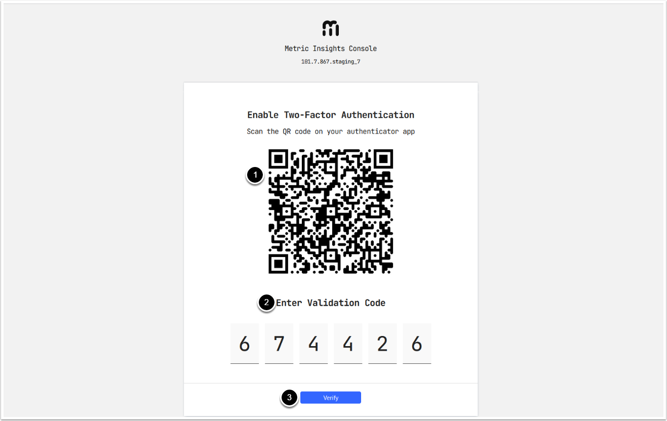 - Scan the QR code using your authentication app (e.g., Google Authenticator).- NOTE: 2FA is required for every action that changes the system's state or MI configuration. Information about these actions is stored in the Audit Log.