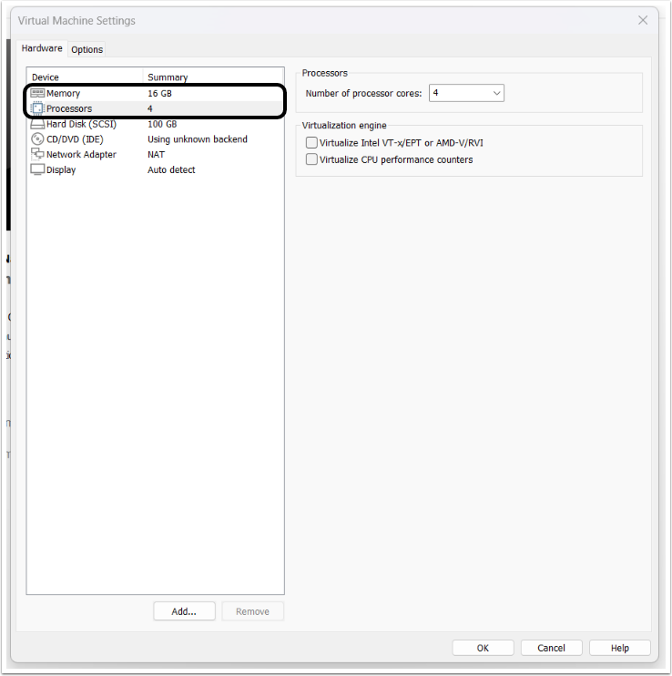 4. Set up the Virtual Machine Hardware Settings