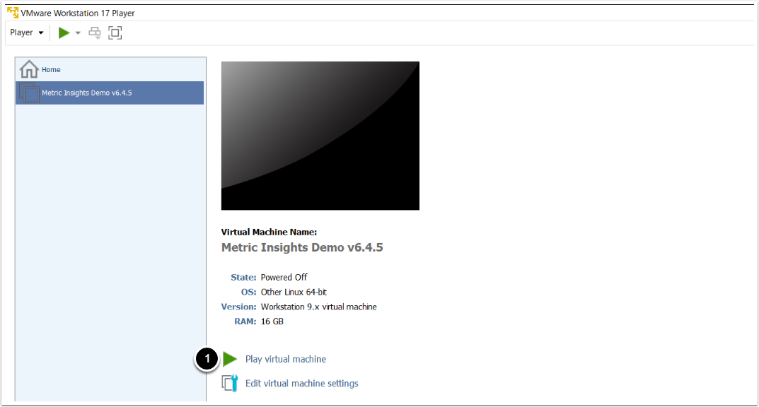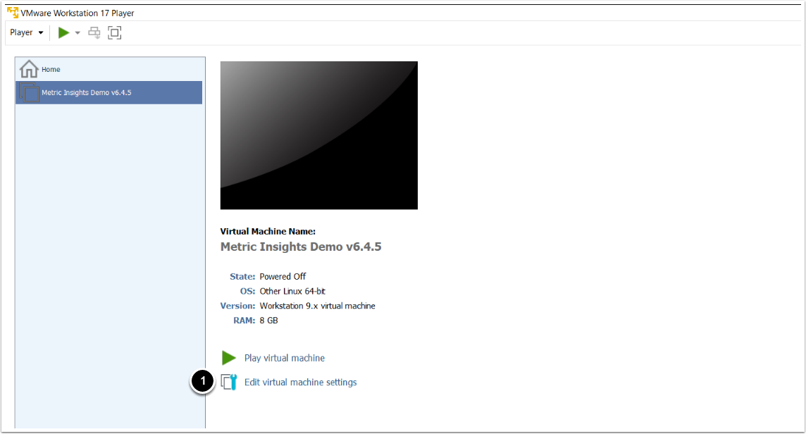 You will need a suitable virtualization environment in which to 'play' the virtual appliance. If you're just trying out Metric Insights and would like to use a desktop machine, you can use VMware Player (Windows) or VMware Fusion (Mac). (We don't recommend desktop machines -- even for pilot projects -- unless they are dedicated machines that will always be running and accessible.) For production installations, you will probably want an enterprise virtualization environment such as VMware vSphere or Microsoft Hyper-V.