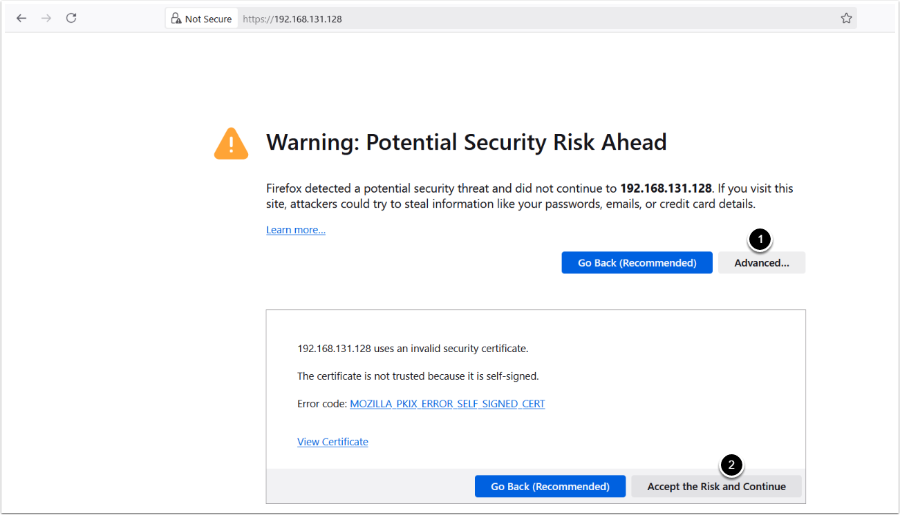 5.2. Open Metric Insights IP in Broswer and Accept SSL Warning