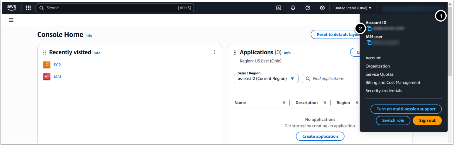 - Copy the Account ID- It is a 12-digit number in the form XXXX-XXXX-XXXX