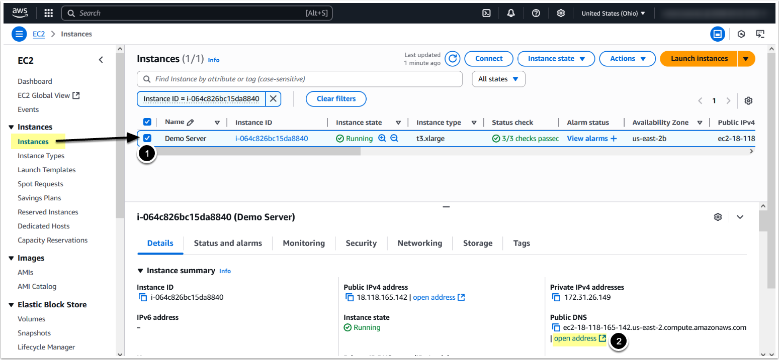 - Copy Public DNS and open it in a new tab, or just click [Open address]