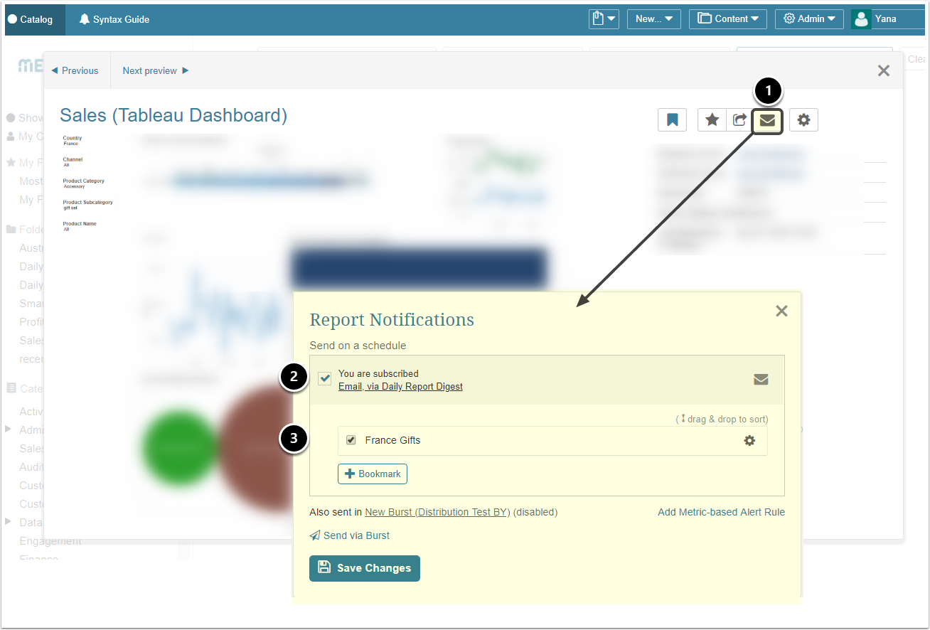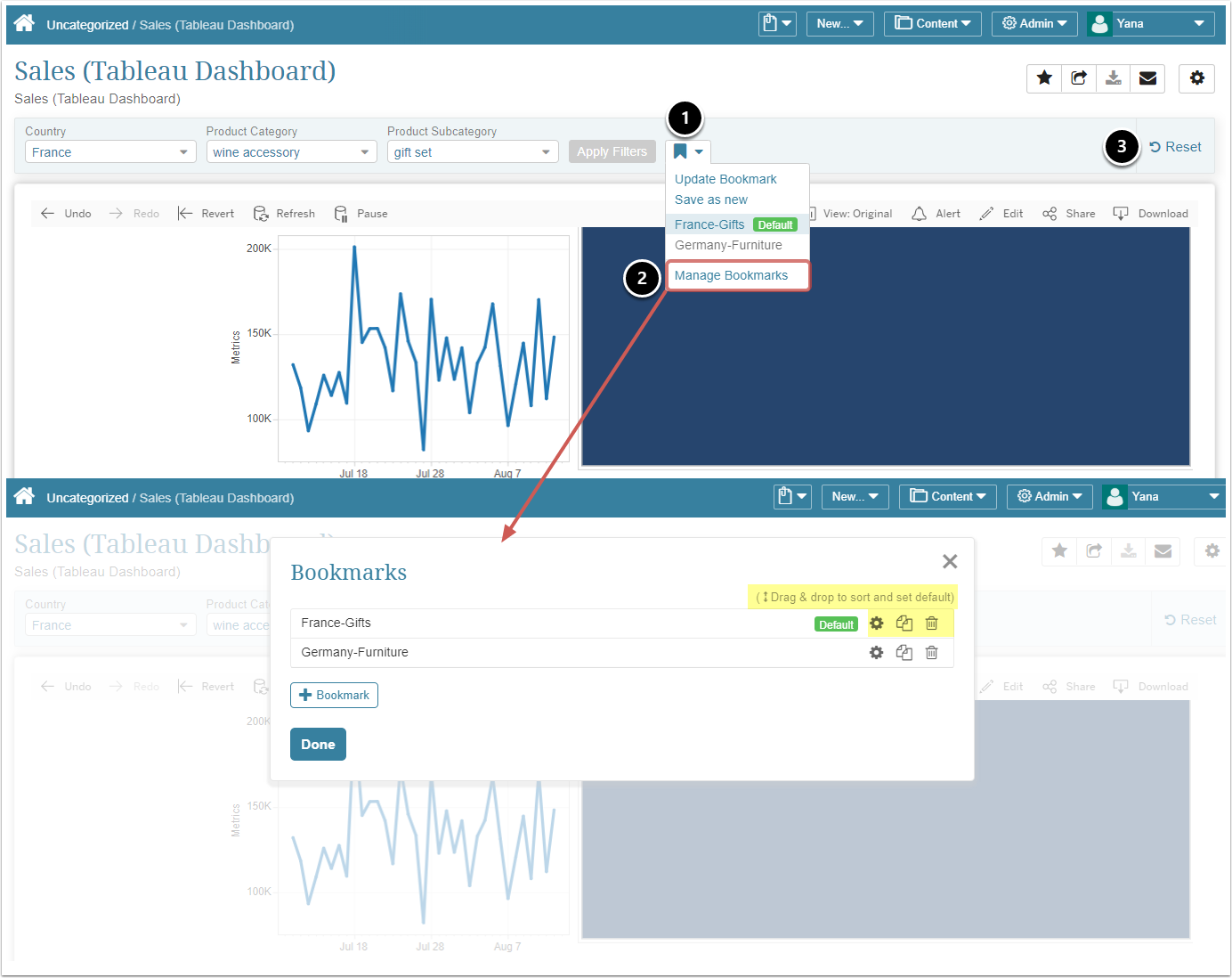 - Filter Bookmarks allow any User to personalize how they view and subscribe to their own External Report content for Tableau, Qlik Sense, QlikView, Spotfire and others.