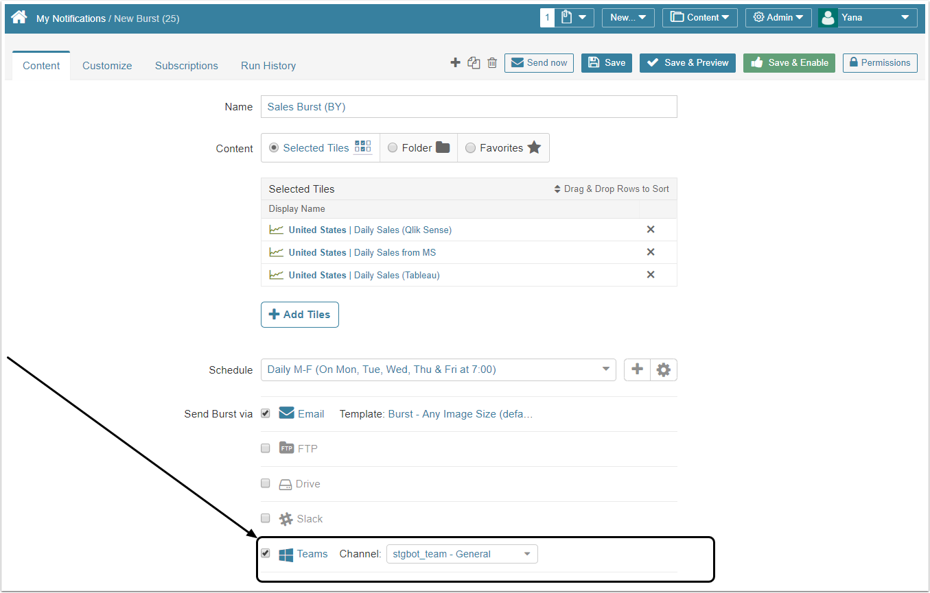 - [5.6.1] Bursting to Microsoft Teams extends the existing Bursting functionality by enabling Users to configure Bursts to be delivered to a specified Microsoft Teams Channel right from the Burst Editor.