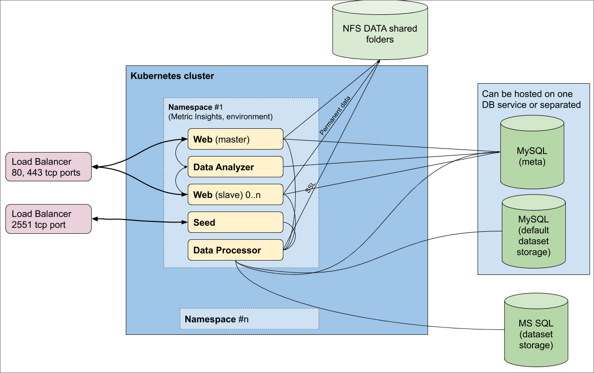 The 6.x versions of Metric Insights represent a new era of modern container-based deployment (allowing for horizontal scaling of specific services), support for significantly larger Datasets via Microsoft SQL Server (the metadata/application DB will remain in MySQL/MariaDB), and the introduction of the Data Processor and Remote Data Processor services (deployed as containers).