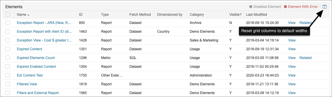 - A column reset button now exists on all grids, clicking will reset each column to its default width.
