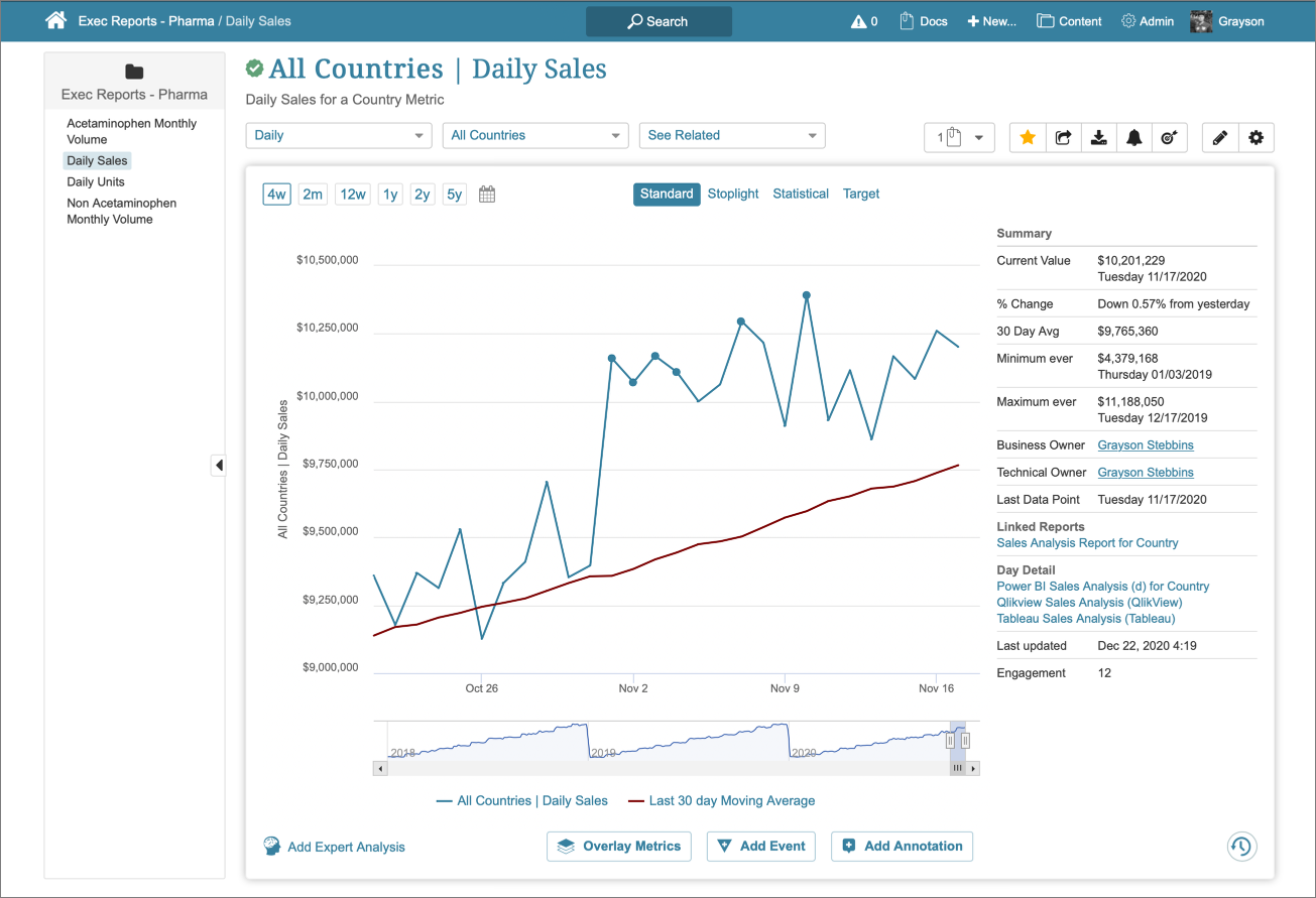 Custom Fields extend metadata management and the "metadata repository" concept, providing the ability to add as much additional metadata to your Metric Insights content as your business requires. Add fields for data governance, business unit ownership, data science—anything!