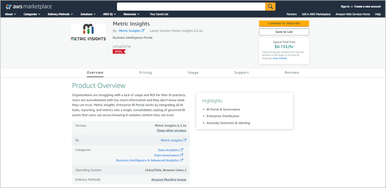 - Metric Insights is available on AWS Marketplace.