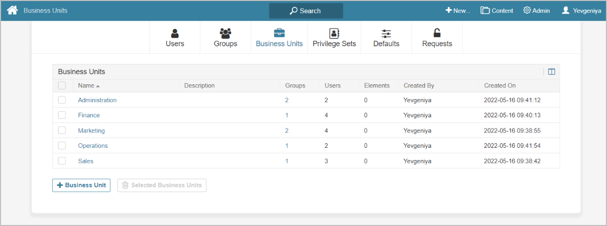We've also introduced a new Business Unit object, to which Groups can be assigned to represent the real structure of your business, with department/LoB/division/unit as the parent of user Groups.