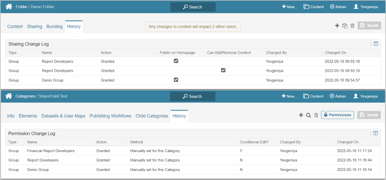 The new History tab has been added to Folder Editor. This tab lists all sharing change records, with the recent ones appearing at the top. Similarly to Folder Editor, Category Editor now includes the History tab too, logging Category assignments between Users and Groups.