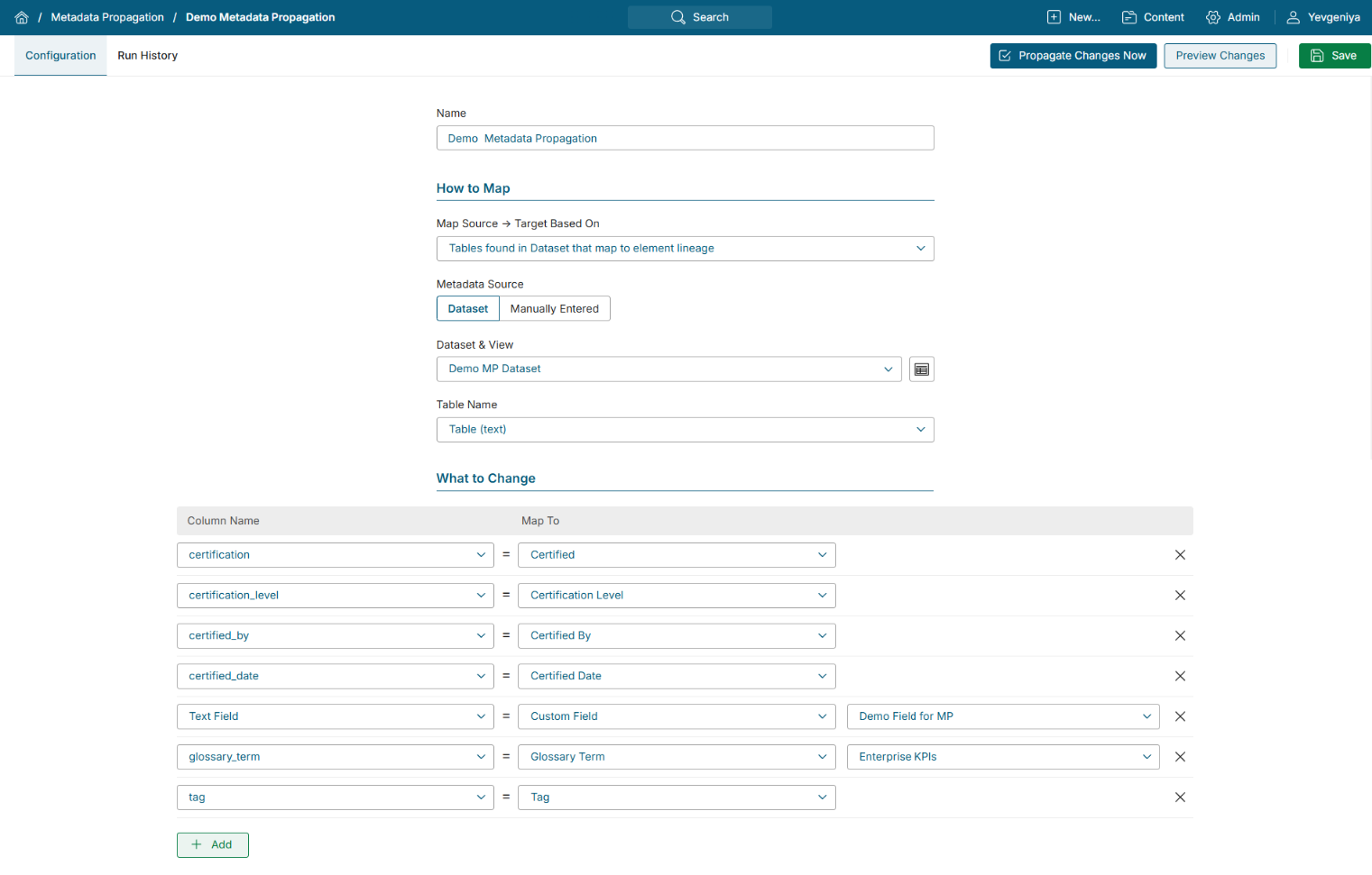Available under Admin > Utilities, Metadata Propagation Rules is our big feature of the release, which can propagate metadata from a source Dataset or manually to such Metadata properties, like Custom Fields, Glossary Terms, Tags, Certification, and much more. There are two propagation methods supported: based on tables and columns or Report Names and IDs. You can trigger propagation immediately form an Editor or wait until the Dataset update runs. It is a powerful feature that allows to make multiple changes is an effortless way.