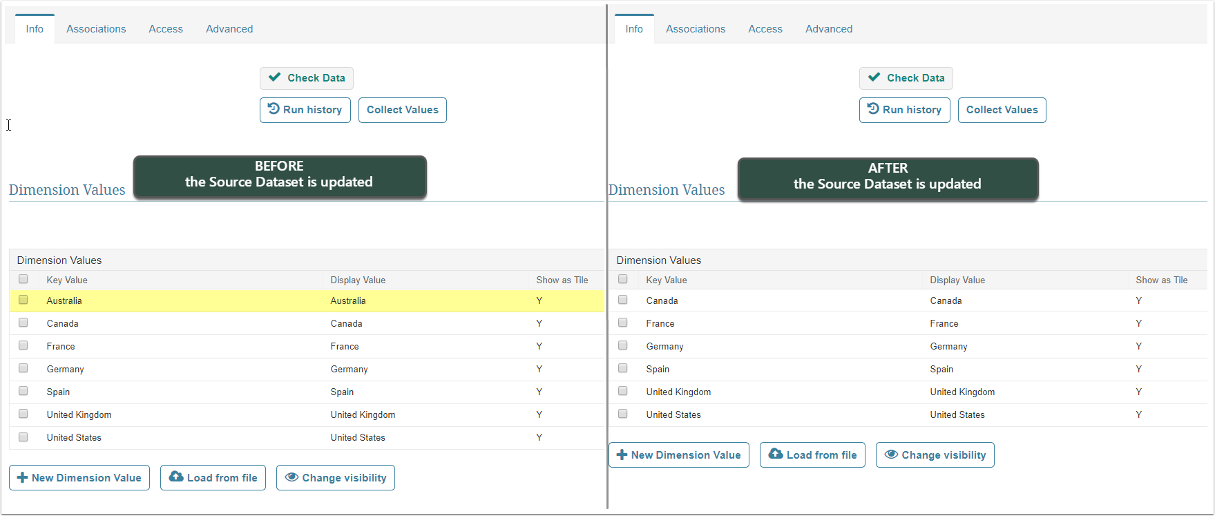 - Wait for the source Dataset data to be refreshed and the new Dimension Values collected