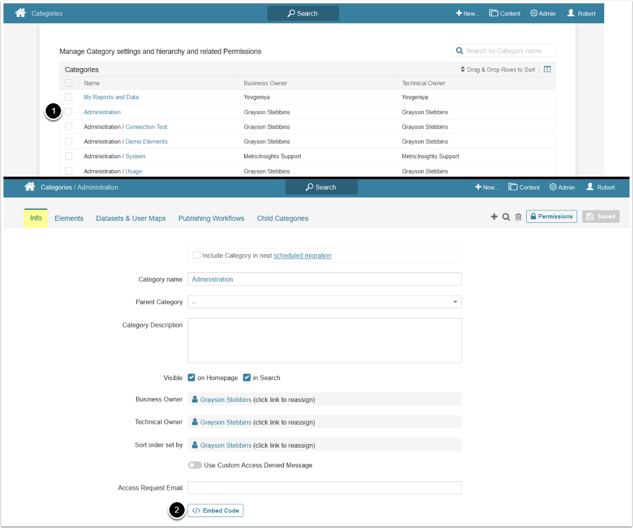 https://mycompany.metricinsights.com/home/embedded/#/category/5