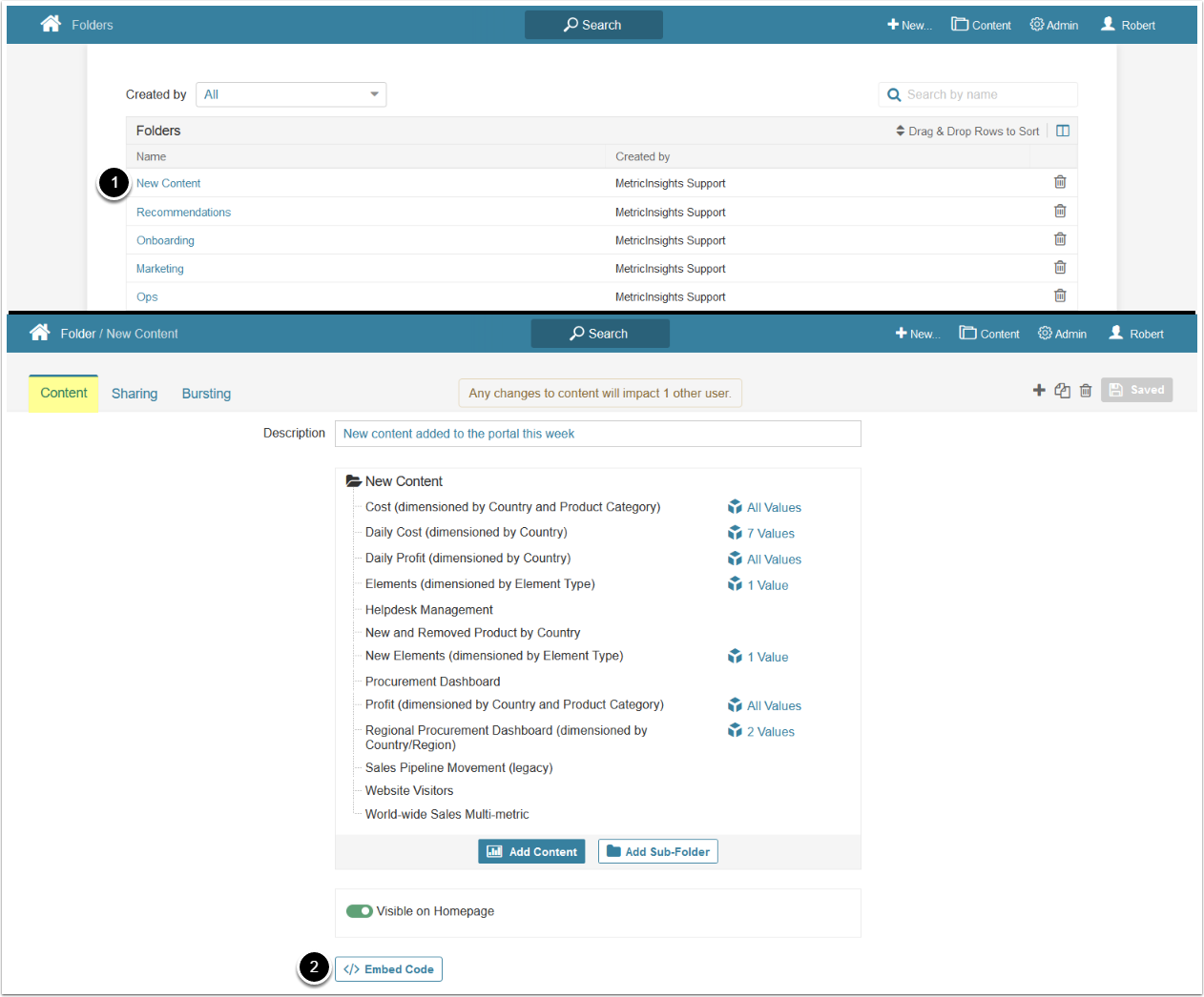 Populate your Portal Pages with Embedded Elements, Folders, and Categories. For details, see: