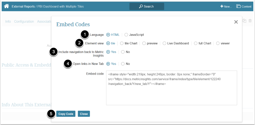 https://demo.metricinsights.com/report/index/customview/element/106761/width/900/height/26002. Select Embedding Options