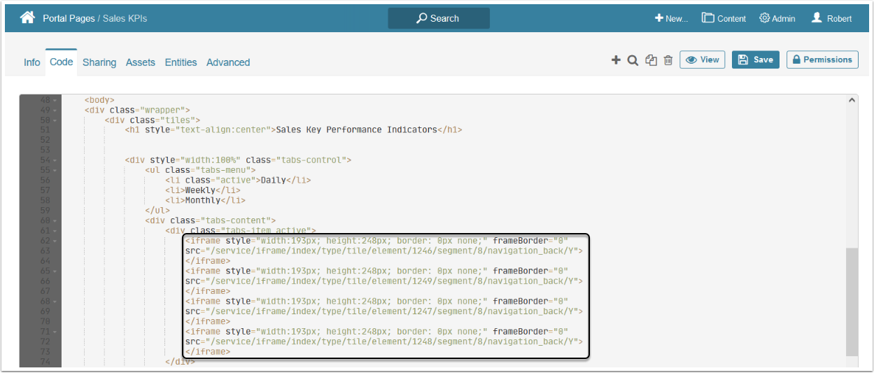 You may also choose to embed all of Metric Insights into an iframe on your web portal: