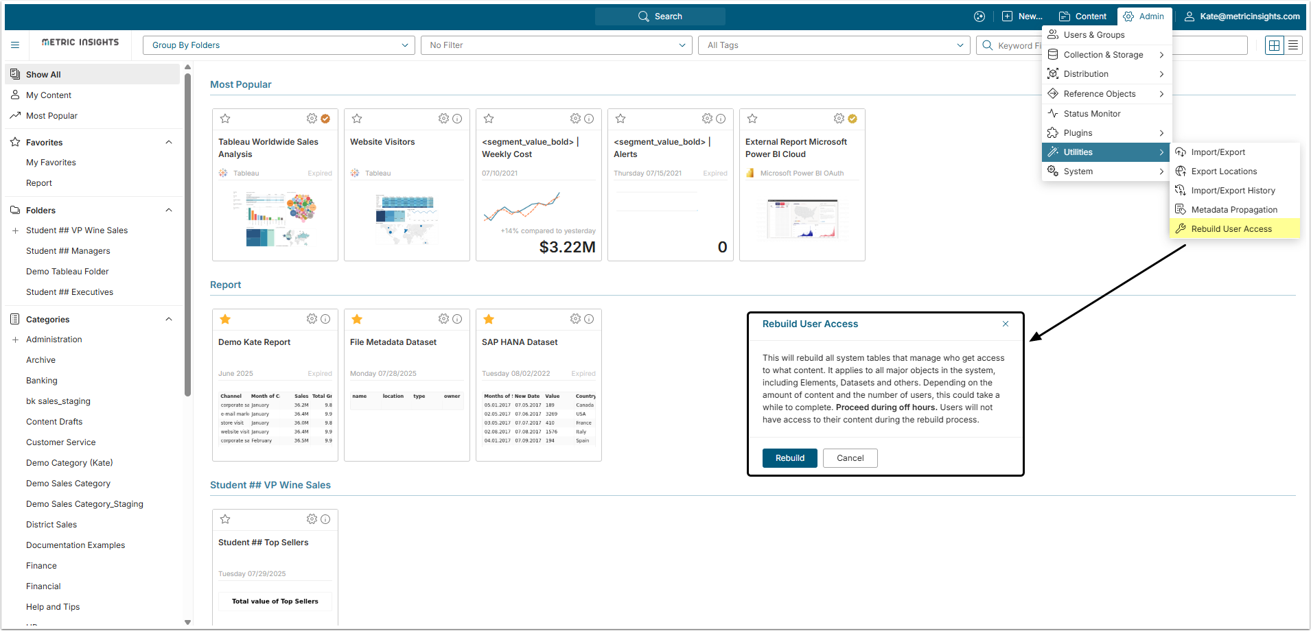This article describes how the Rebuild User Access function works in the Metric Insights.