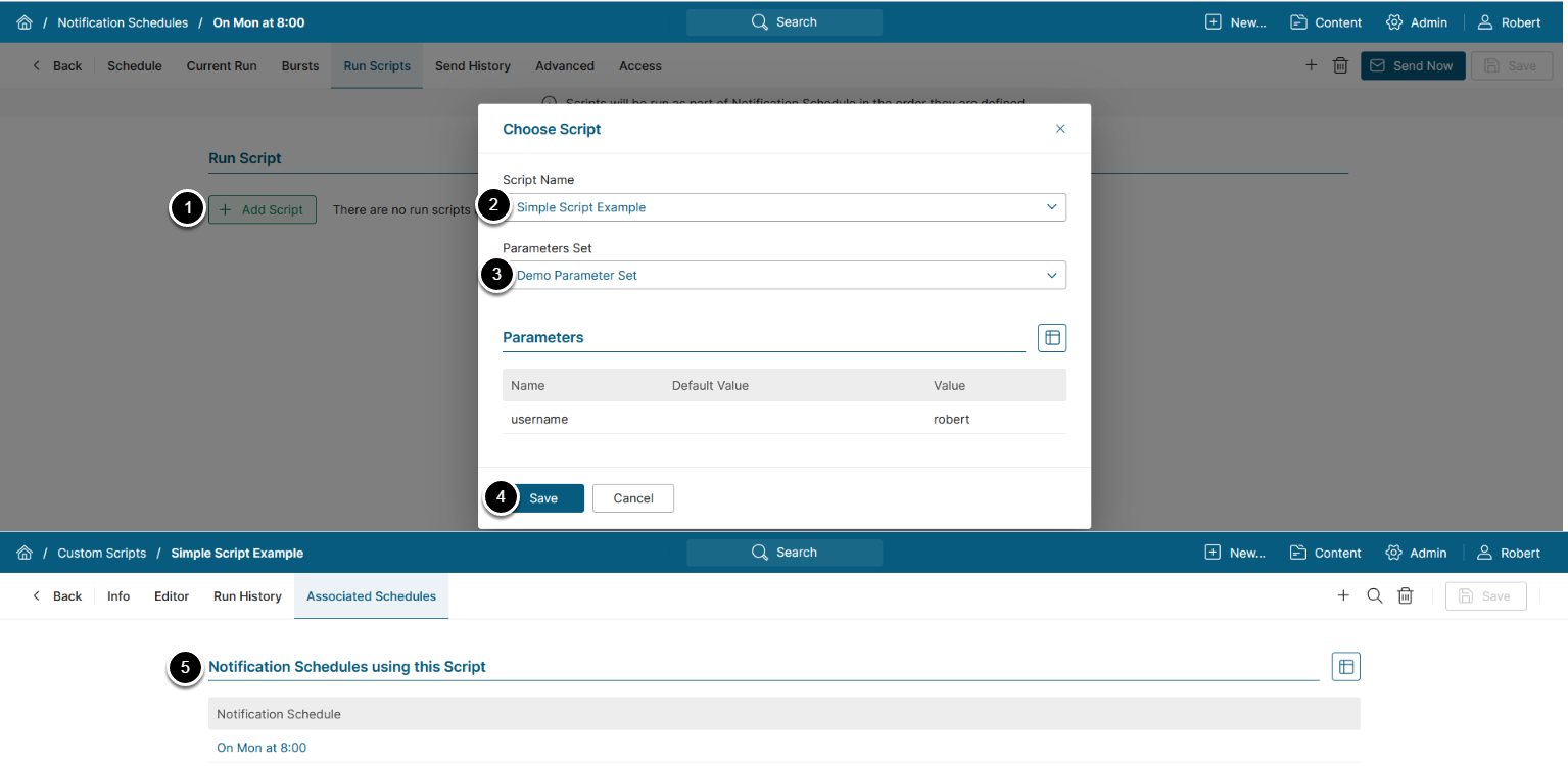- Script Name: Choose a Custom Script that will run on the Notification Schedule