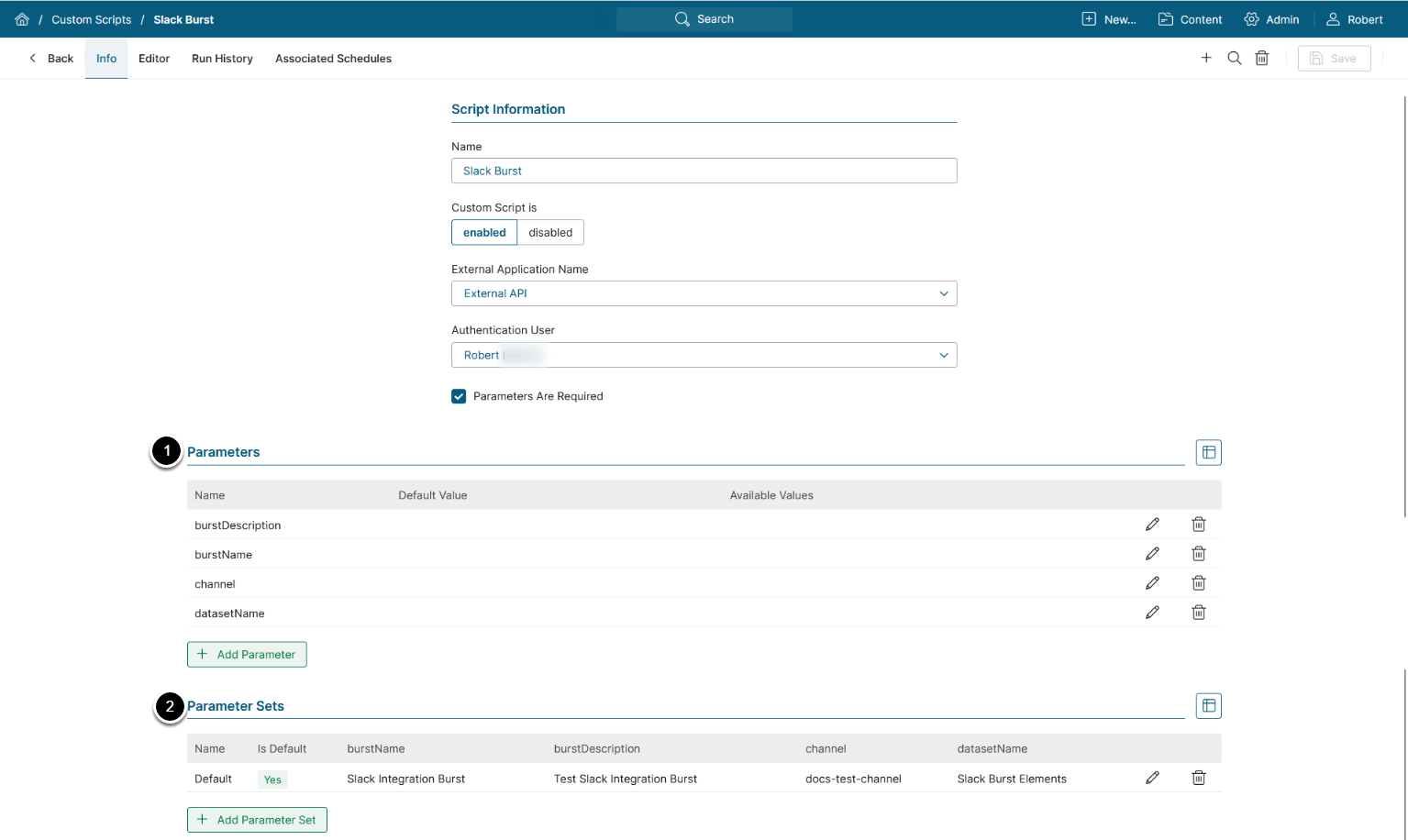 - Parameter Set: Choose a Parameter Set with which the Custom Script will run