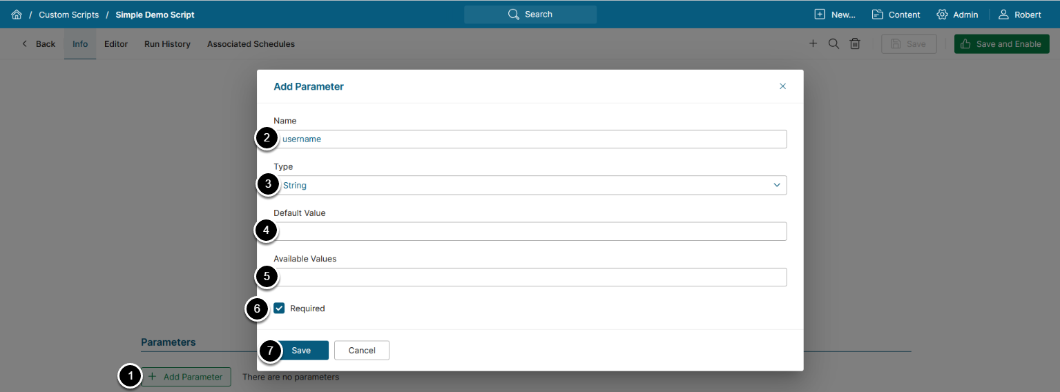 - Required: Activate the checkbox to make the Parameter required