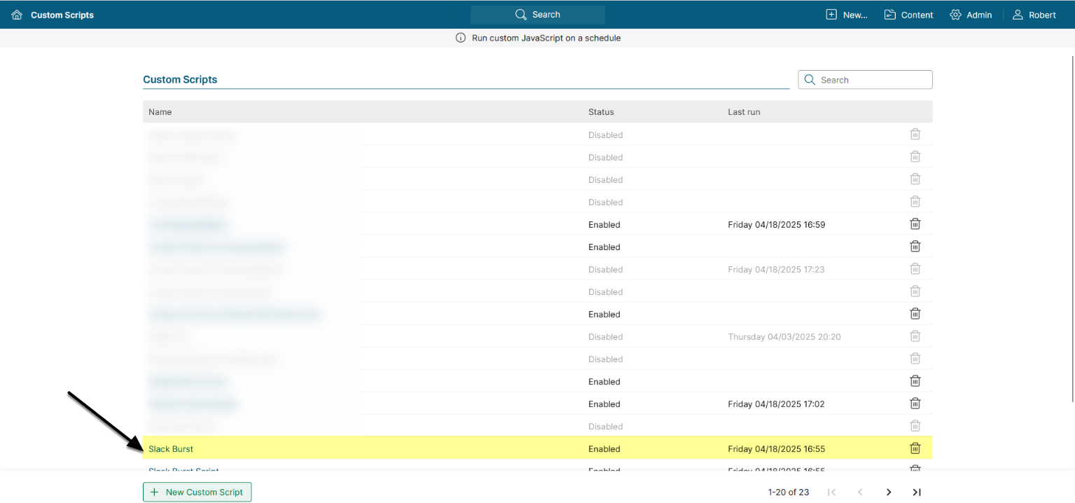 Find the Slack Burst Custom Script and open it.