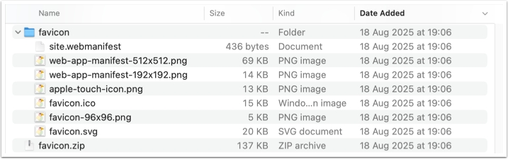 [Upload Archive], then select the previously generated .zipfile with favicons