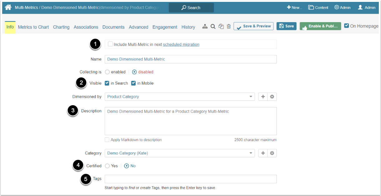 - Visible: Choose whether the Multi-Metric will be visible in Search results and on Mobile devices