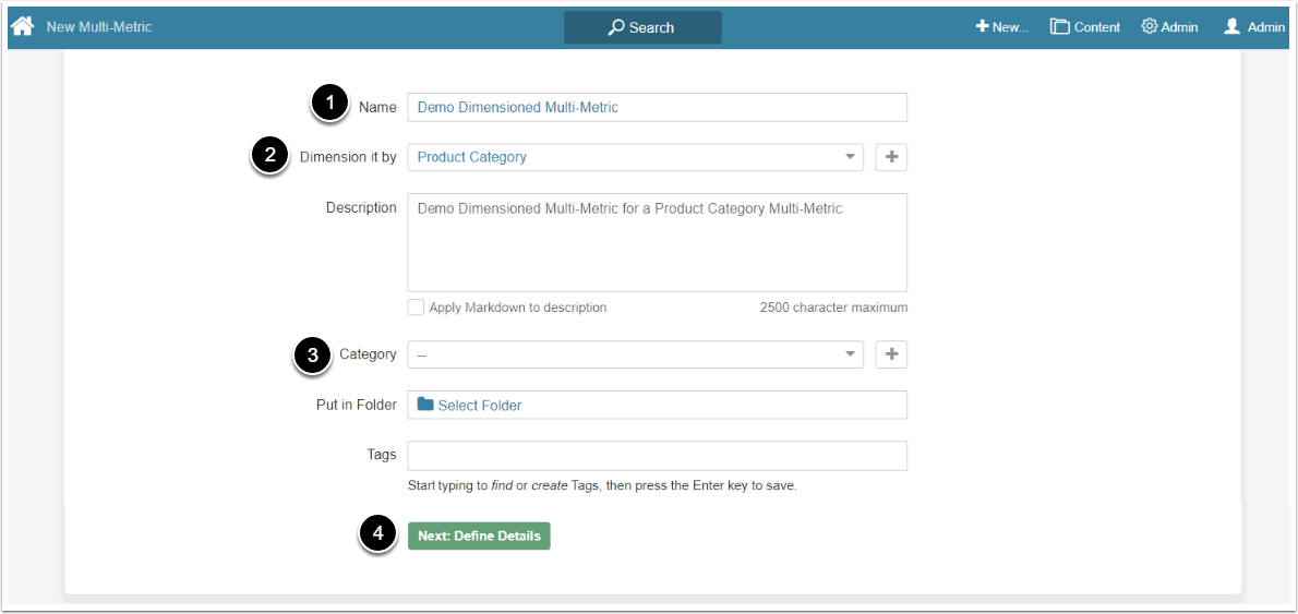 - [Next: Define Details] to open the Multi-Metric Editor.