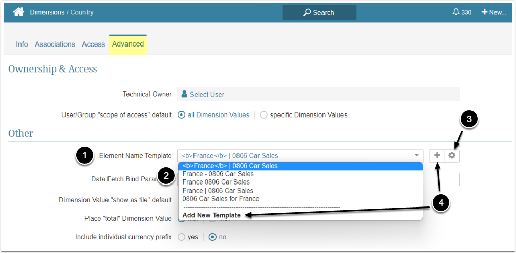 This article describes how to set up a Naming Template for the Dimension. This Template defines how the names of the Elements to which this Dimension is applied will look like.