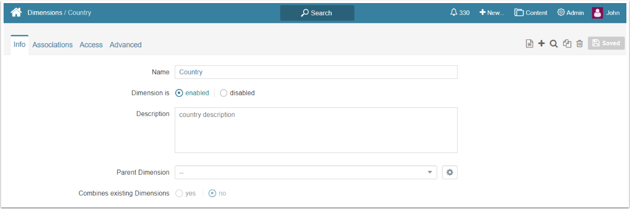 Access Content > Dimension and select an existing Dimension from the list or create a new one