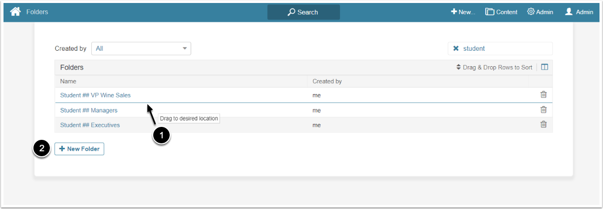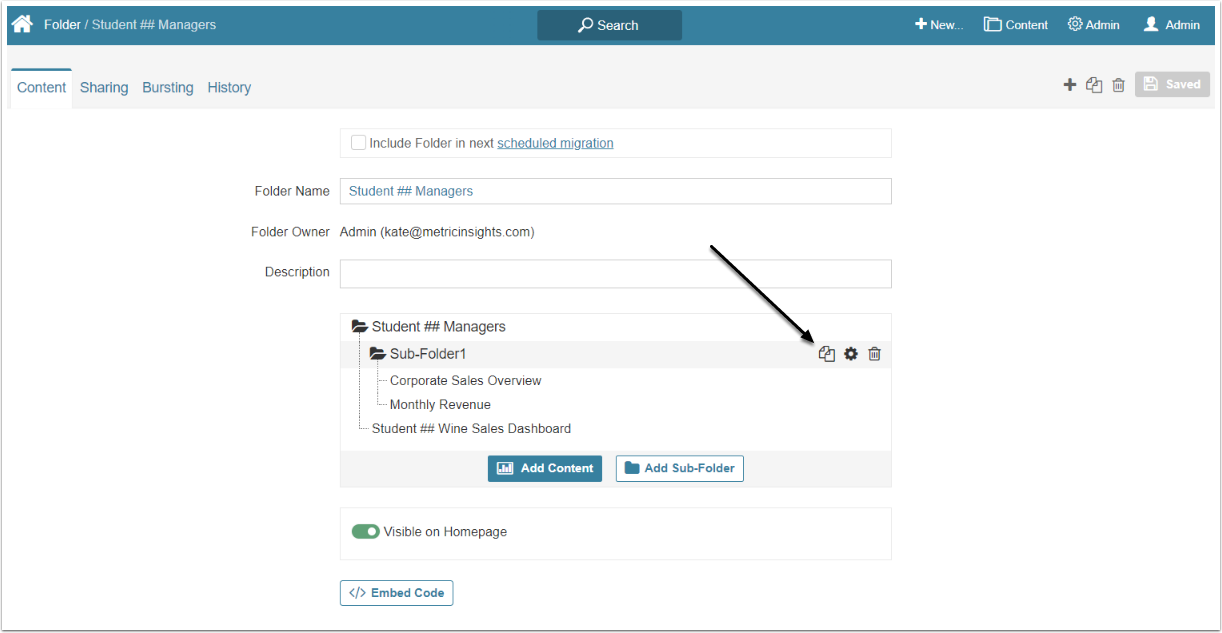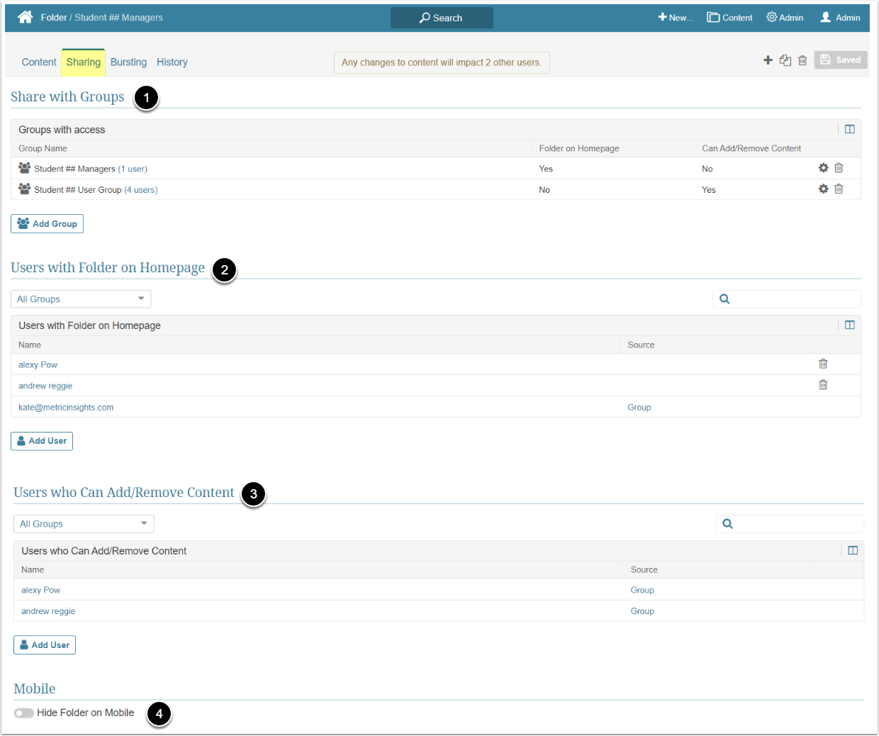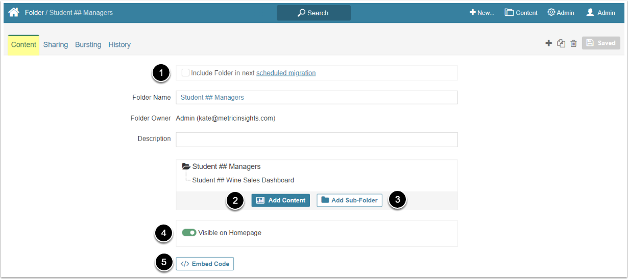 Admins and Power Users can modify a Folder’s contents in the Content tab.