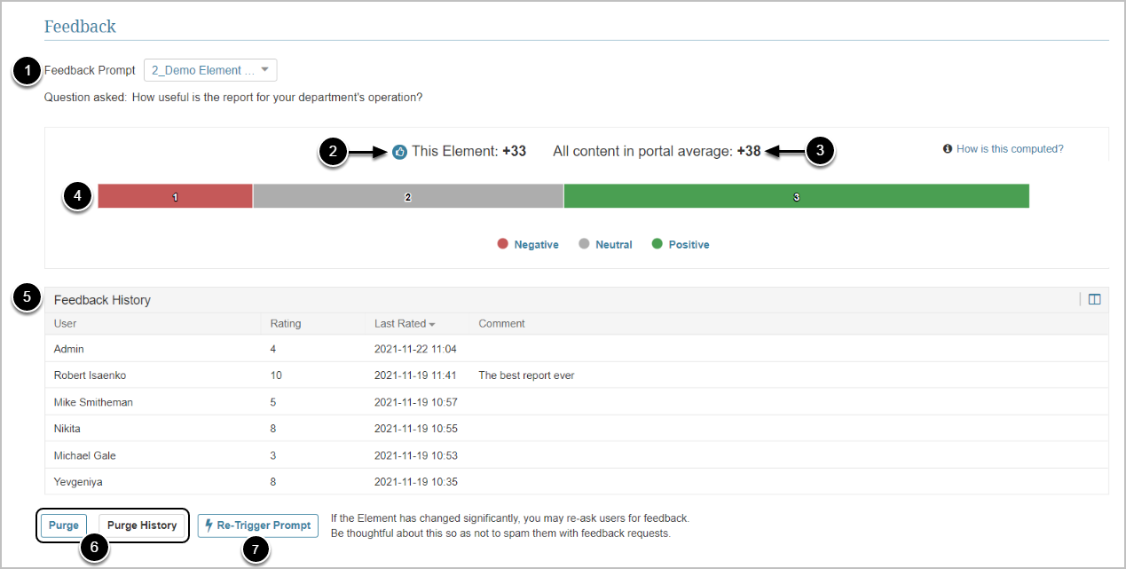 - Overall Rating bar displays a breakdown of negative, neutral, and positive ratings collected for the Feedback Prompt.