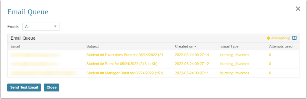 When the Burst is generated, Notification threads send the message to "email_queue" table, regardless of the method used to distribute the Burst; e.g., email, FTP, mobile. From that queue, the Burst is sent to the recipient. Distribution is performed by several treads called Email Queue threads. The number of Email Queue threads can be set via a System Variable.