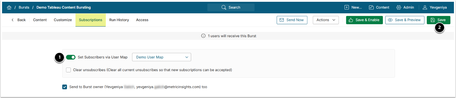 - Set Subscribers via User Map: Enable and select the User Map in the drop-down menu.