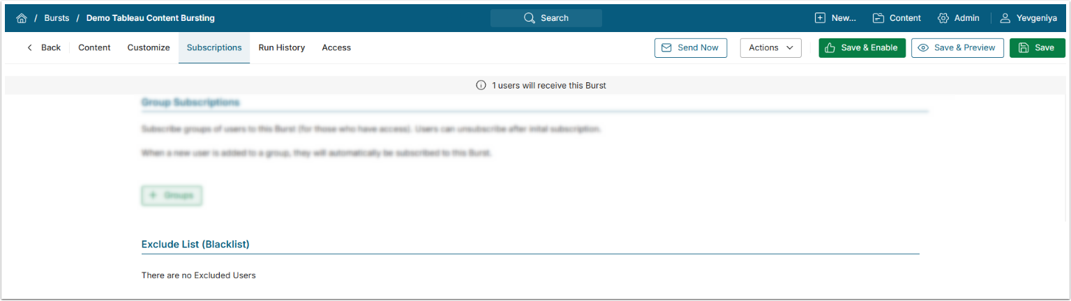- [+ Add Groups] to add Groups of Users to the distribution list;