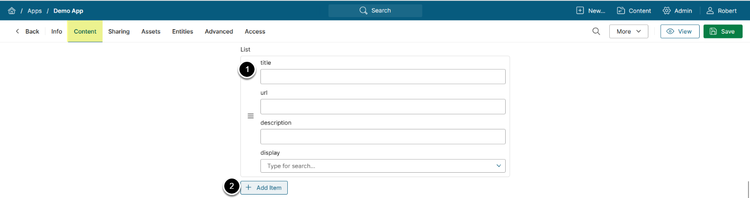 - Additional Options: If you choose "Static" or "Dataset Data" option in the Source drop-down menu, here you can specify the contents of the list that will be shown in the App Editor by entering JSON