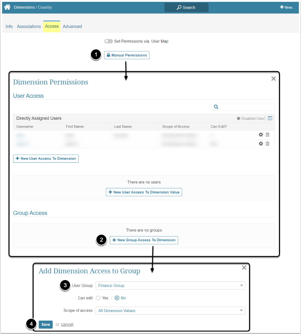 NOTE: If edit access is given to a Dimension, it is given to all Dimension Values by default.