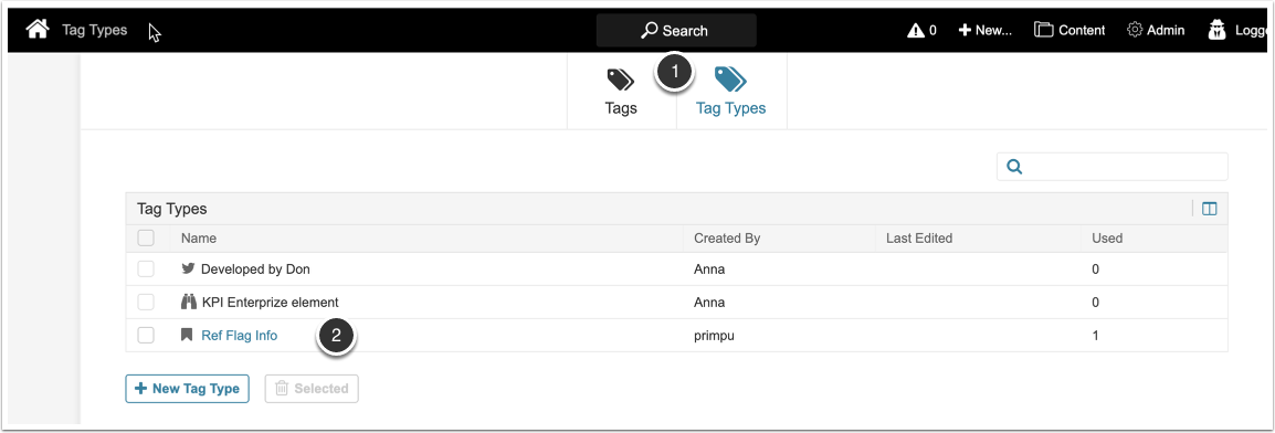 - Any Tag Type created by the PU is shown with an Active Name link to its editor