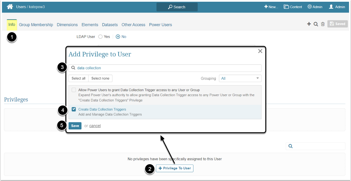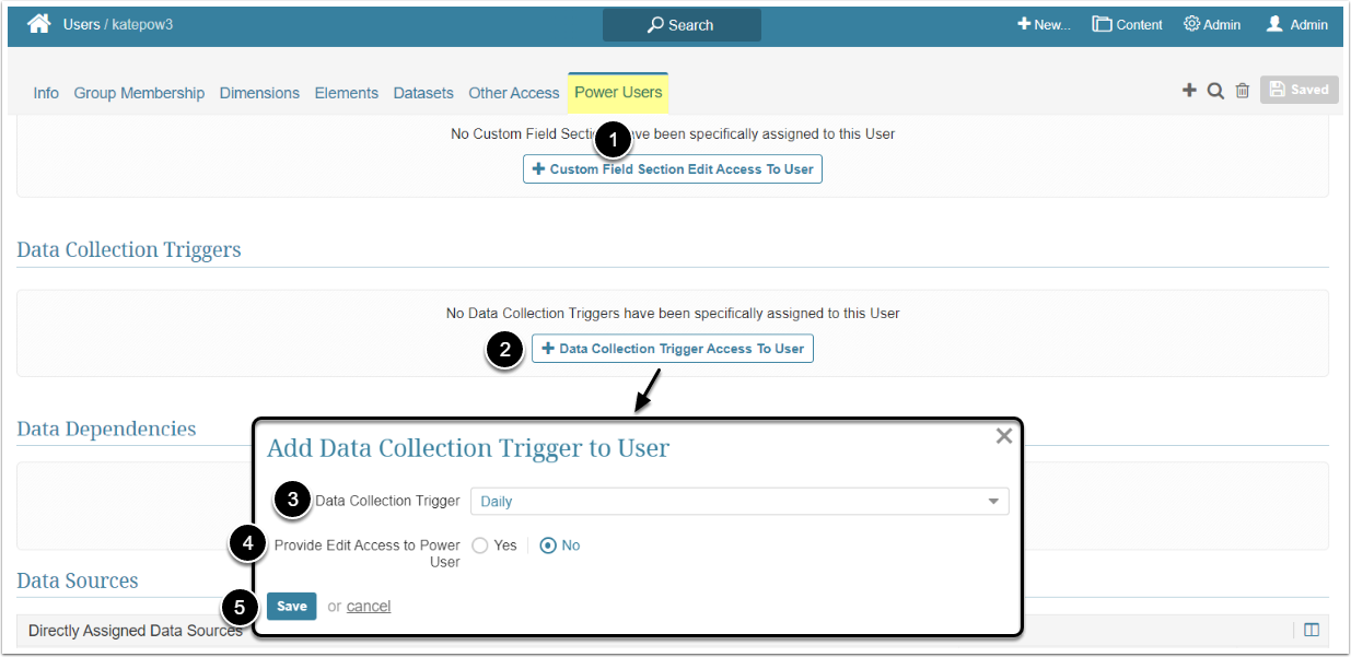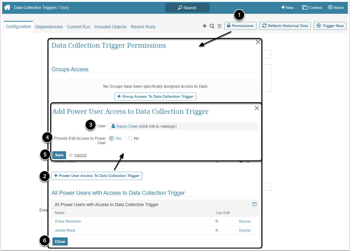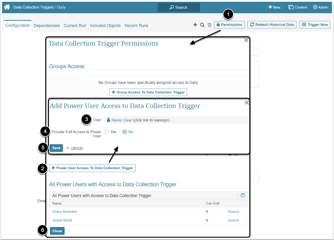 A Power User can get access to the Data Collection Trigger individually or inherit it from the Group he/she is a member of. For more details about granting View Access to the Group, check the Assigning Privileges and Permissions to the Group article.