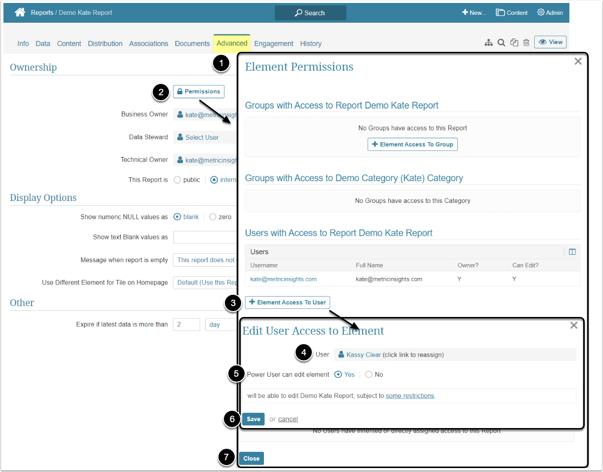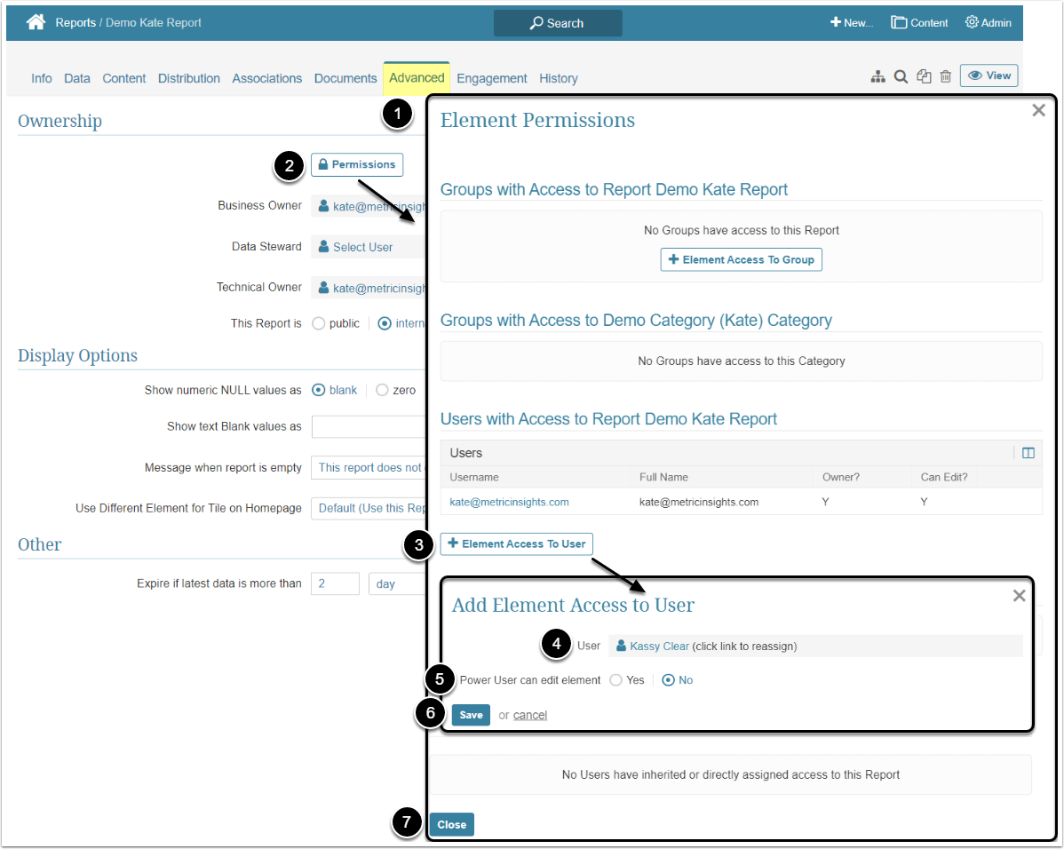 In Metric Insights, Power Users have to be granted a Permission to be able to view or edit a Report. This article describes the steps an Administrator should take to give the Power User View and Edit access to a Dataset Report.