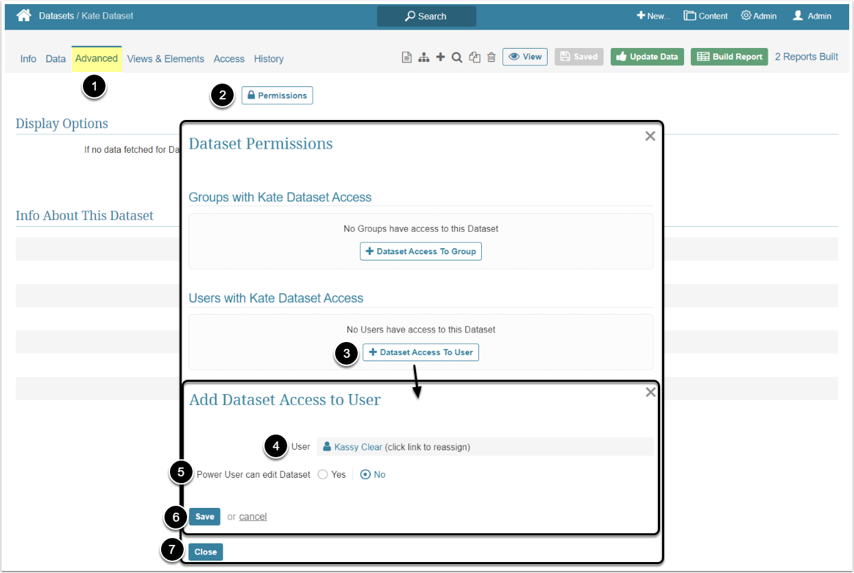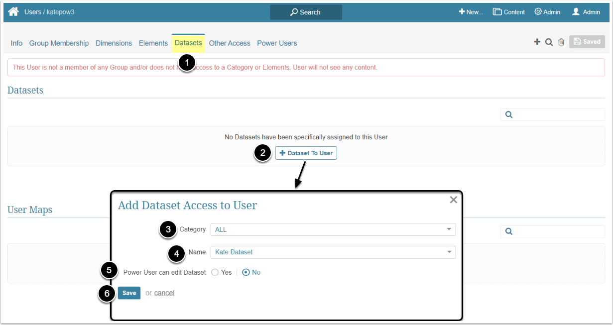A Power User can get edit access to the Dataset Report individually or inherit it from the Group he/she is a member of.
