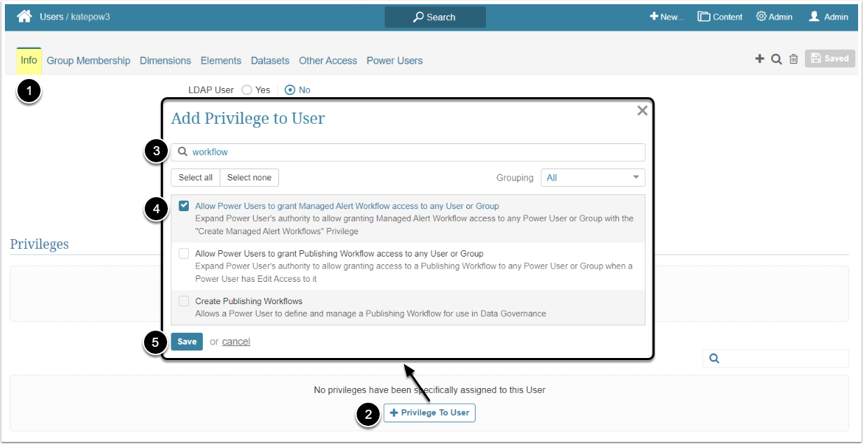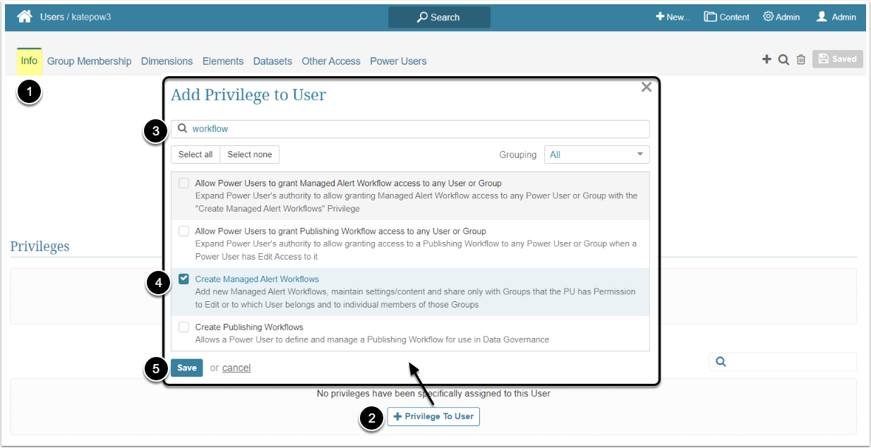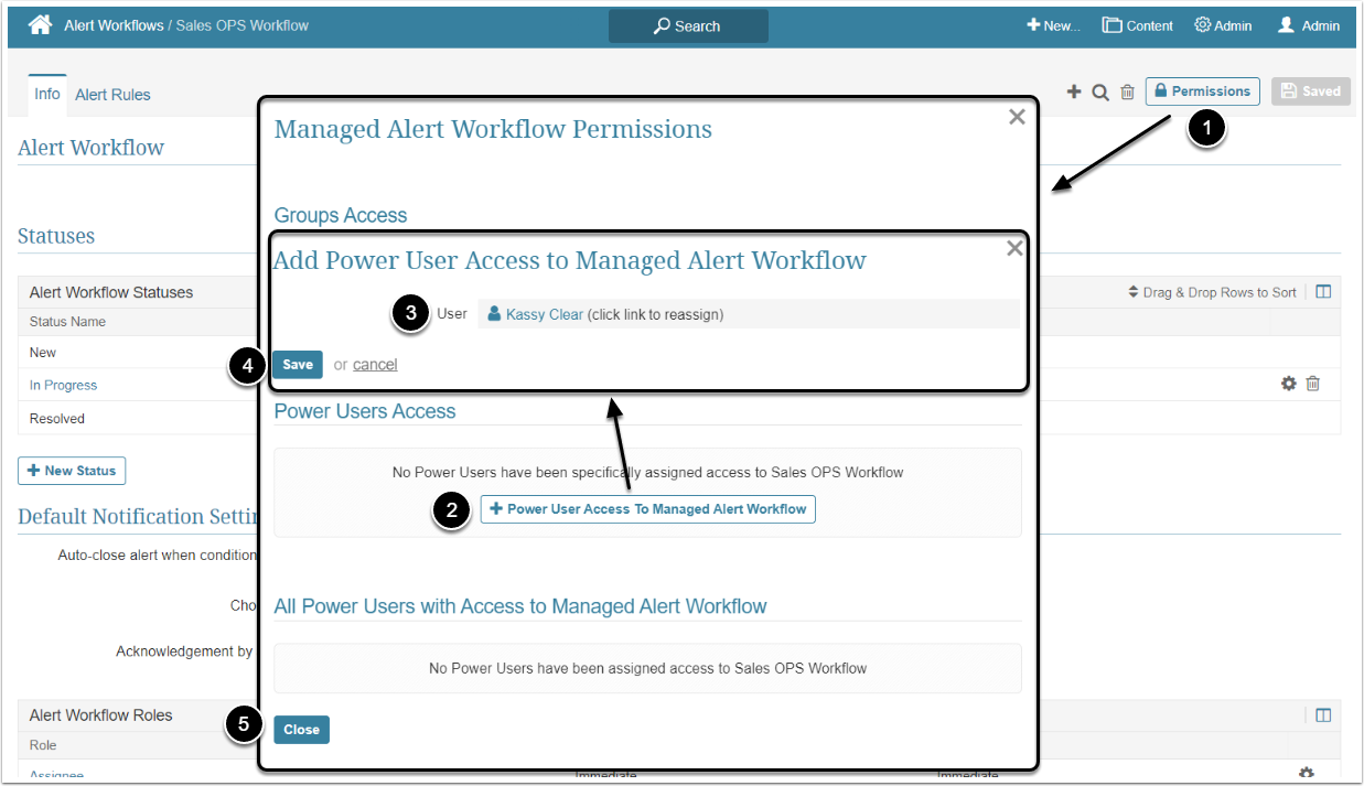 If the Power User needs access to the KPI Alert Rules connected to the Alert Workflow, go through the Granting Power User Access to KPI Alerts article.