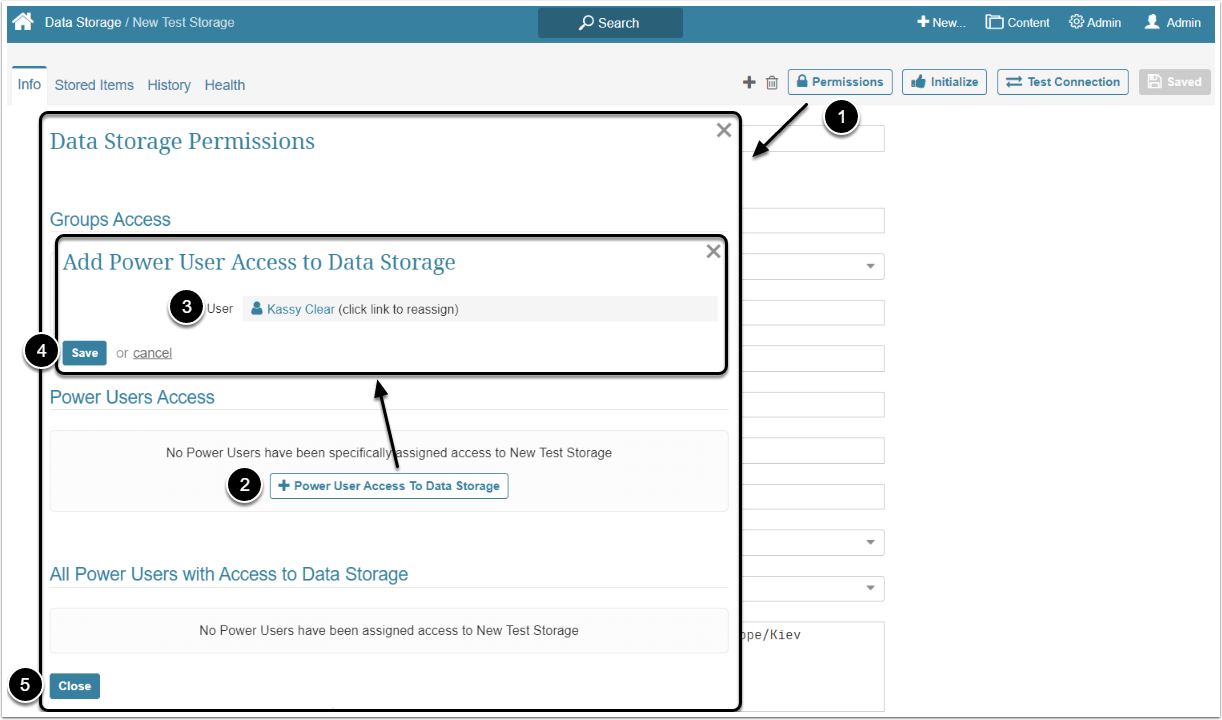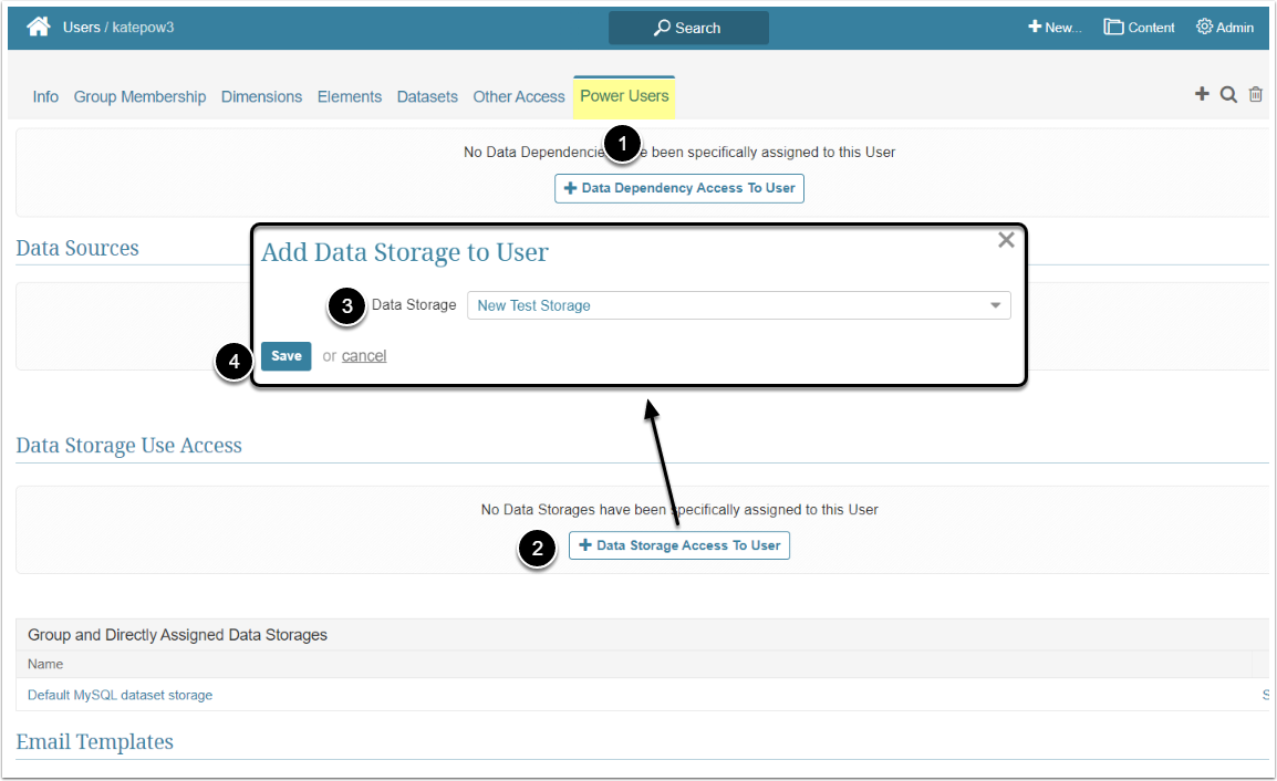 A Power User can get Use Access to the Data Storage individually or inherit it from the Group he/she is a member of. For more details about granting Access to the Group, check the Assigning Privileges and Permissions to the Group article.