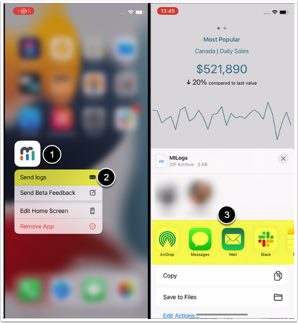 Note: By default the logs are sent to mobile@metricinsights.com. The address can be changed in your email app before the logs are sent.