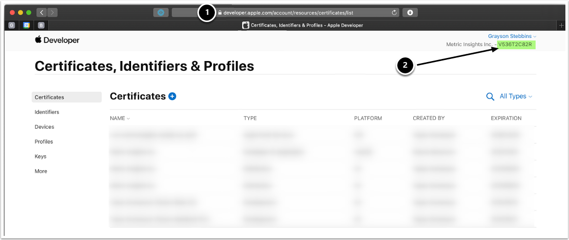 - Access developer.apple.com > Account > Certificates, IDs & Profiles