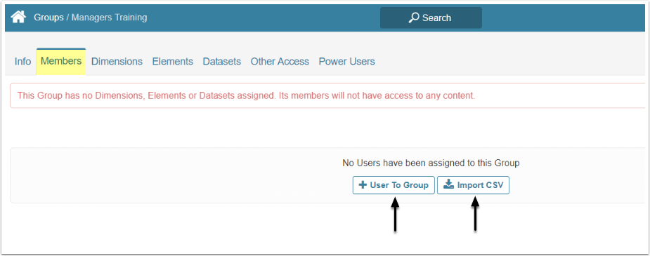 - All access Group (this option is available to Admins only): Select "Yes" option to grant this Group a View Access to all available Elements and Dimensions