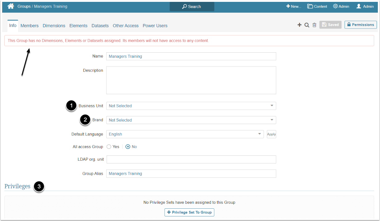 - Here you can set Privileges and Privilege Sets to the Group- For more details about how to assign Privileges, check Assigning Privileges and Permissions to the Group article.